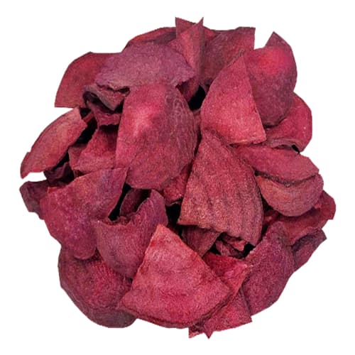 Củ dền sấy giòn được chế biến từ 100% củ dền tươi ngon, cắt thành miếng mỏng đều, giữ nguyên màu đỏ tươi rực rỡ và hương thơm tự nhiên đặc trưng của củ dền. Củ dền sau khi thu hoạch được làm sạch kỹ càng, loại bỏ tạp chất rồi đưa vào quy trình sấy thăng hoa hiện đại, giúp sản phẩm giữ được độ giòn, màu sắc tươi sáng và hương vị nguyên bản như củ dền tươi.