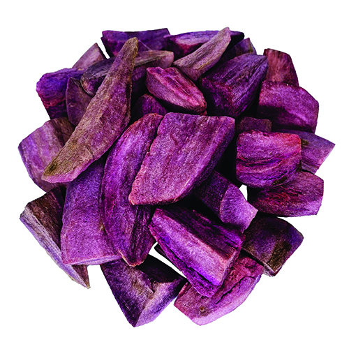 Khoai Lang Tím Giòn Không Đường được chế biến từ những củ khoai lang tím tươi, ngọt đậm, được chọn lọc kỹ lưỡng từ các nông trại nổi tiếng ở Việt Nam. Sau khi thu hoạch, khoai lang được làm sạch, cắt thành lát mỏng và đưa vào quy trình sấy thăng hoa tiên tiến. Công nghệ này đảm bảo sản phẩm giữ được độ giòn, màu tím đặc trưng, và hương vị ngọt thanh của khoai lang tím tươi. Sản phẩm không sử dụng đường, hóa chất hay phụ gia, đảm bảo an toàn thực phẩm và giữ trọn giá trị dinh dưỡng.